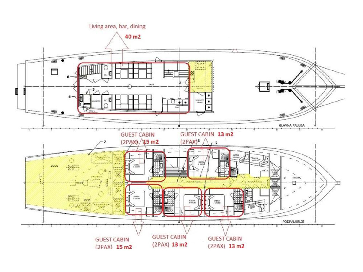 Plans for completion with all installations and engine and much of the equipment and cabin design are in our possession and the buyer gets them at the same time as the ship.